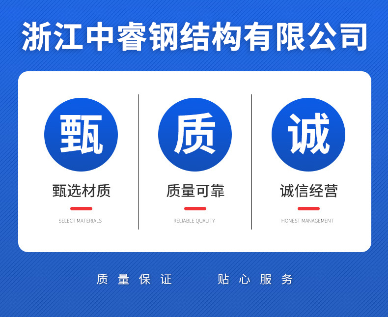 浙江中睿钢结构有限公司是一家大型建筑工程施工单位,专业生产防火彩钢板、岩棉轻钢组合房、集装箱式房、围挡及护栏,钢结构工程专业施工,各种建筑物新建、结构加固改建、拆建等等,企业多年来,一直致力于建筑施工工程专业承包等众多领域的探索与创新。公司设备俱全,技术力量雄厚,实行科学管理是规模较大的制造安装化一体的生产企业。公司坚持“以诚信服务业主,以质量开拓市场,以创新扩大优势,以效益壮大企业”的经营战略,实现了在全国各地全方位、多领域的经营开拓,众多项目己成为地标建筑或业界典范。